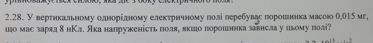 у вертикальному однорідному електричному полі перебуває порошинка масою 0.015мг,що має заряд 8нКл.Яка напруженість поля, якщо порошинка зависла у цоьму полі