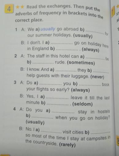 read the exchanges.then put the adverbs of frequency in brackets ino the correct place