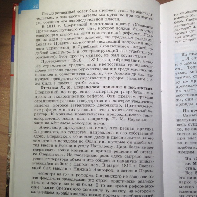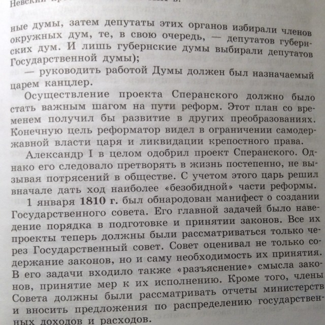 "Какие положения проекта реформ Сперанского вы считаете главными и почему?"