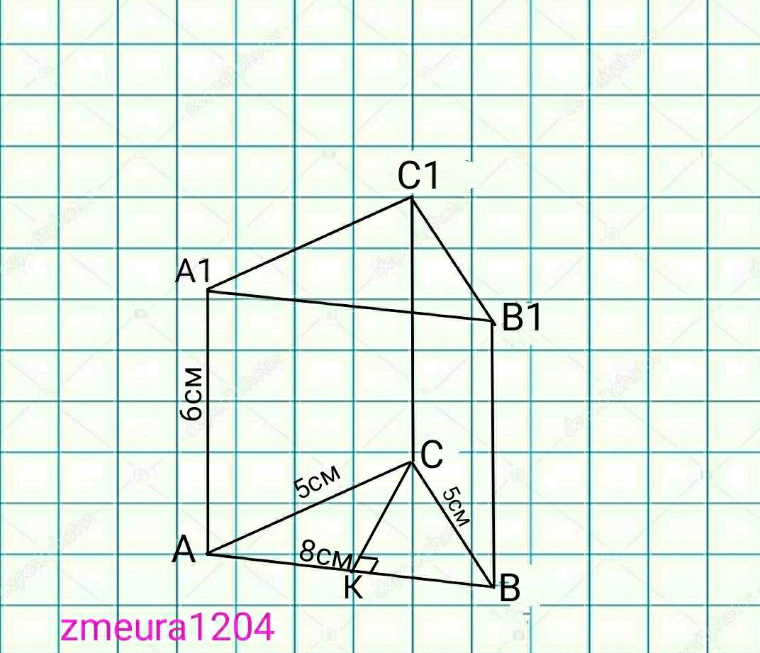 В основании прямой призмы лежит равнобедренный треугольник с основанием 8 см и боковой стороной 5 см. Найдите площадь боковой поверхности и объем призмы, если ее высота ровна 6 см.