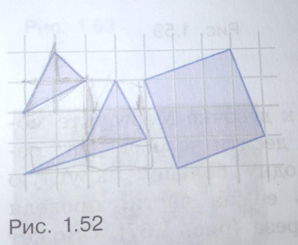 1.18 На клетчатой бумаге нарисовали несколько фигур (рис. 1.52). Сколько клеток составляет площадь каждой из них?