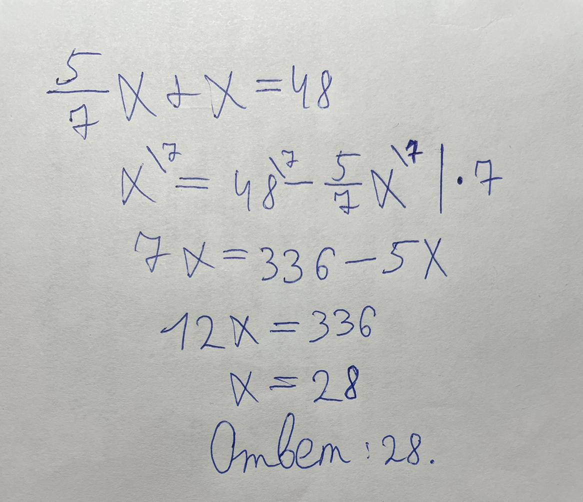 Ответ на фото. На второй строчке «домножал» уравнение на 7, чтобы избавиться от знаменателей.