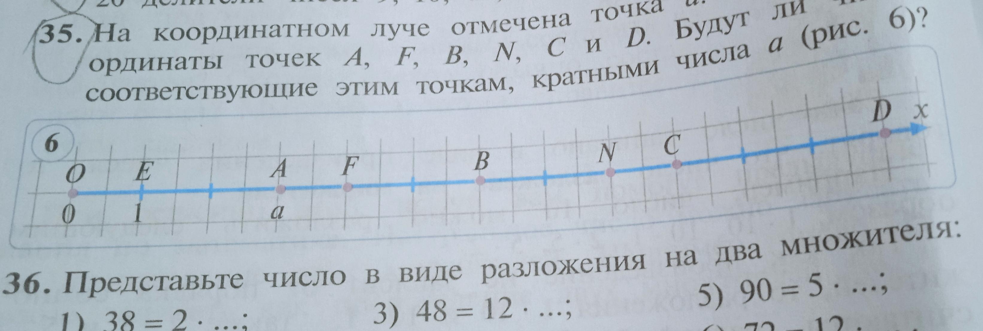 На координатном луче отмечена точка a . Найдите координаты точек A, F, B, N, C и D. Будут ли числа, соответствующие этим точкам, кратными числа a