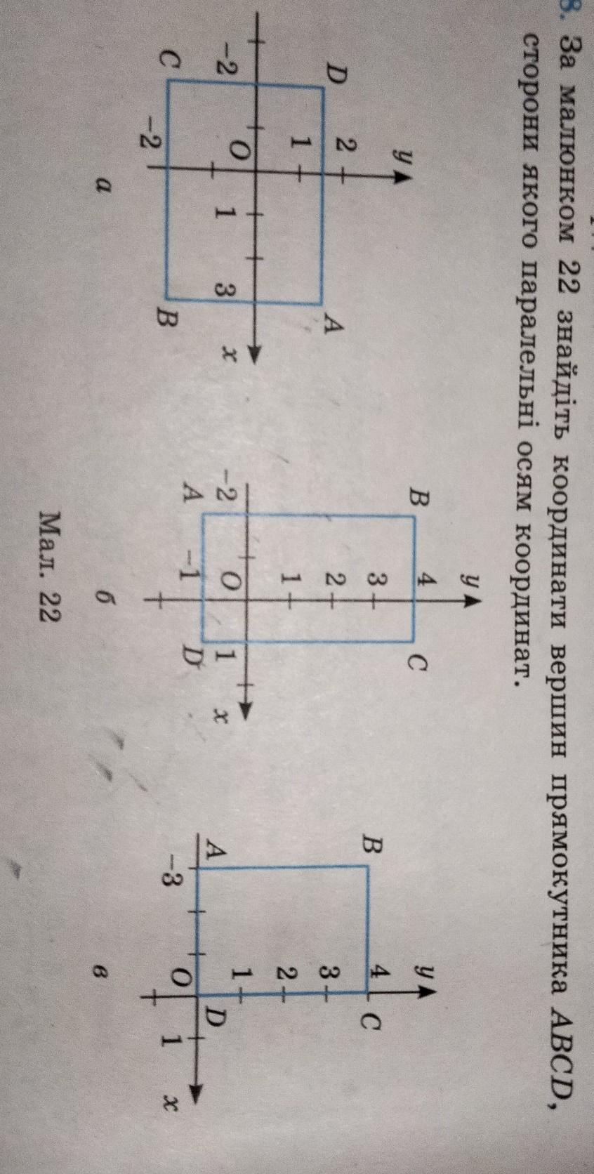 88. За малюнком 22 знайдіть координати вершин прямокутника ABCD, сторони якого паралельні осям координат.