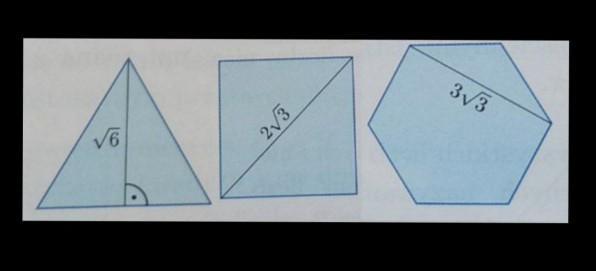 На рисунках изображены равносторонний треугольник, квадрат и правильный шестиугольник. Периметр какого из этих многоугольников выражается рациональным числом?