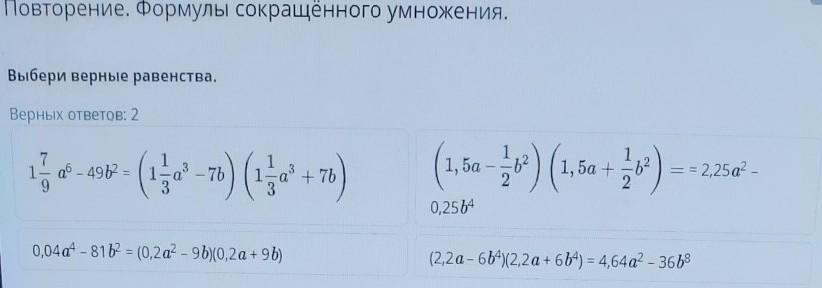 Верные равенства: