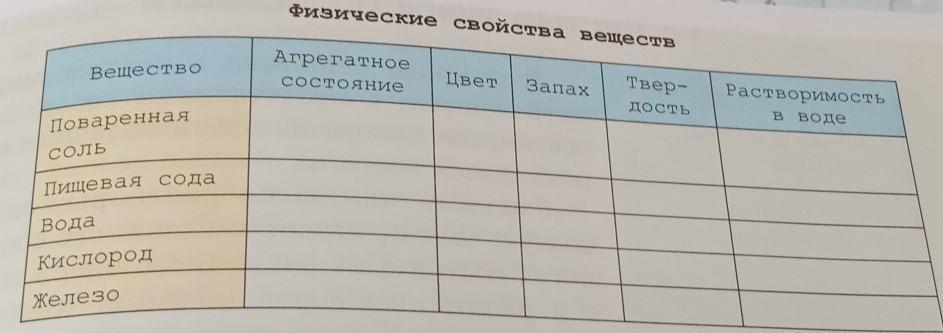 5. Начертите в тетрадях и заполните приведенную ниже таблицу.