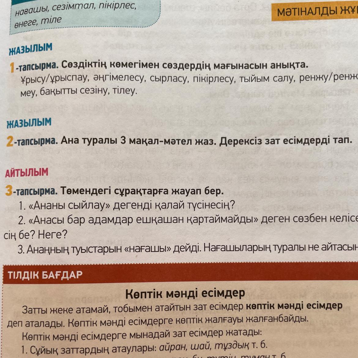 2-тапсырма. Ана туралы 3 мақал-мәтел жаз. Дерексіз зат есімдерді тап.