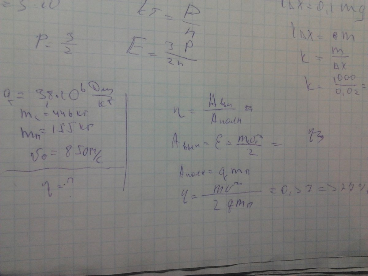 Заряд 305 миллиметровой пушки содержит 155 кг пороха. Масса снаряда 446 кг. начальная скорость снаряда 850 м/с Найти КПД пушки