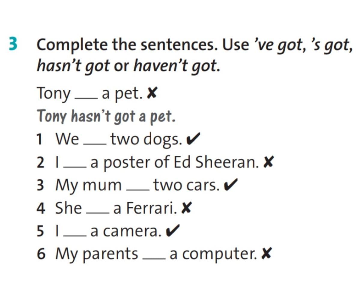 6. My parents hasn't got a computer.