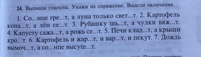 1 спряжение: греет, копают, сеют, шьют, вяжут, сажают, сеют, кладут, кроют, пекут.