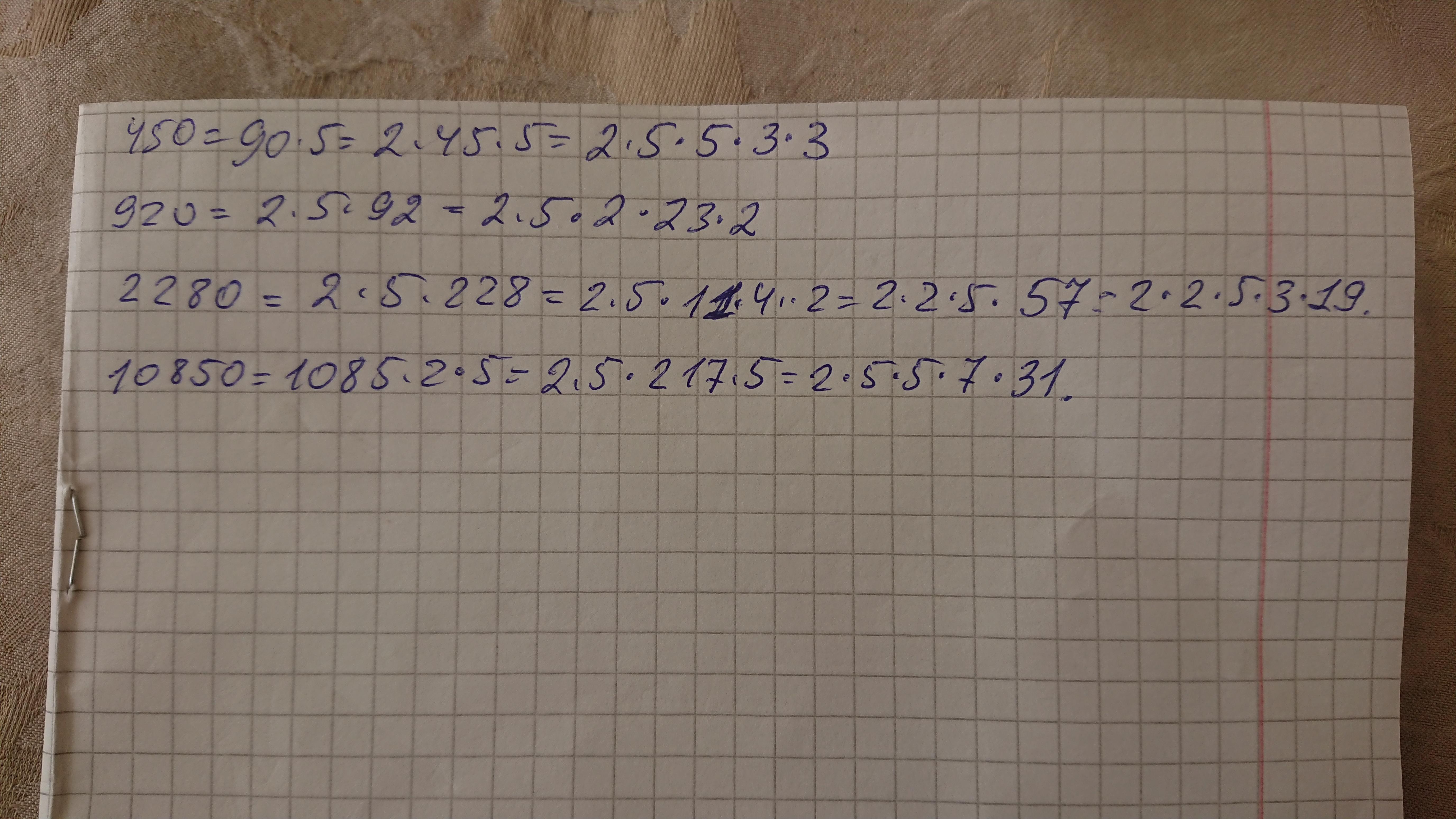 2 · 2 · 3 ; 2 · 3 · 7 ; 2 · 2 · 2 · 3 · 3 · 3 ; 2 · 3 · 3 · 5 · 5 ; 2 · 2 · 2 · 5 · 23 ; 2 · 2 · 2 · 3 · 5 · 19 ; 2 · 5 · 5 · 7 · 31 .