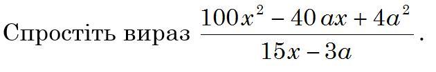 (100x² - 40ax + 4a²)/15x - 3a = 4(25x² - 10ax + a²)/15x - 3a = 4(5x - a)²/3(5x-a) = 4(5x-a)²/3(5x-a) = 4(5x-a)/3