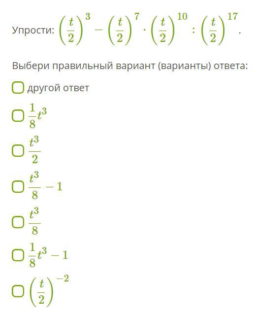 Упрости: (t2)3−(t2)7⋅(t2)10:(t2)17.