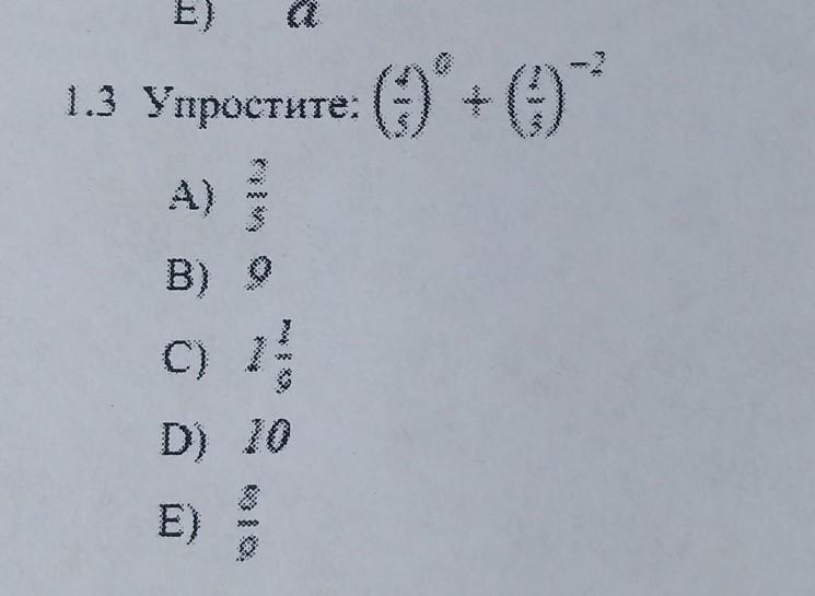 4/5⁰ + (-1/3)⁻² = 1 + 9 = 10
