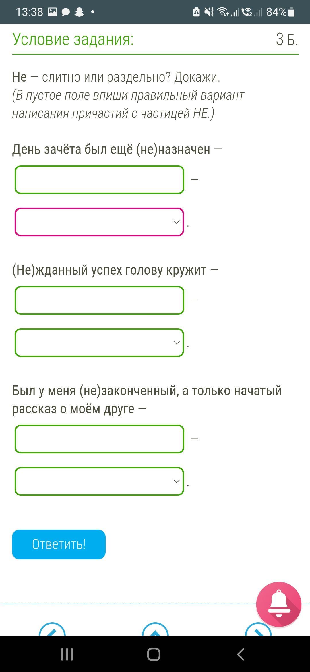 (В пустое поле впиши правильный вариант написания причастий с частицей НЕ.)