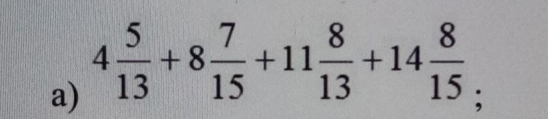 берем первую и третью дробь, складываем целые части, получается 15 и дробные, получается 1, потом вторую и четвертую, целые - 22, и дробные - 1, итого 15+1+22+1=39