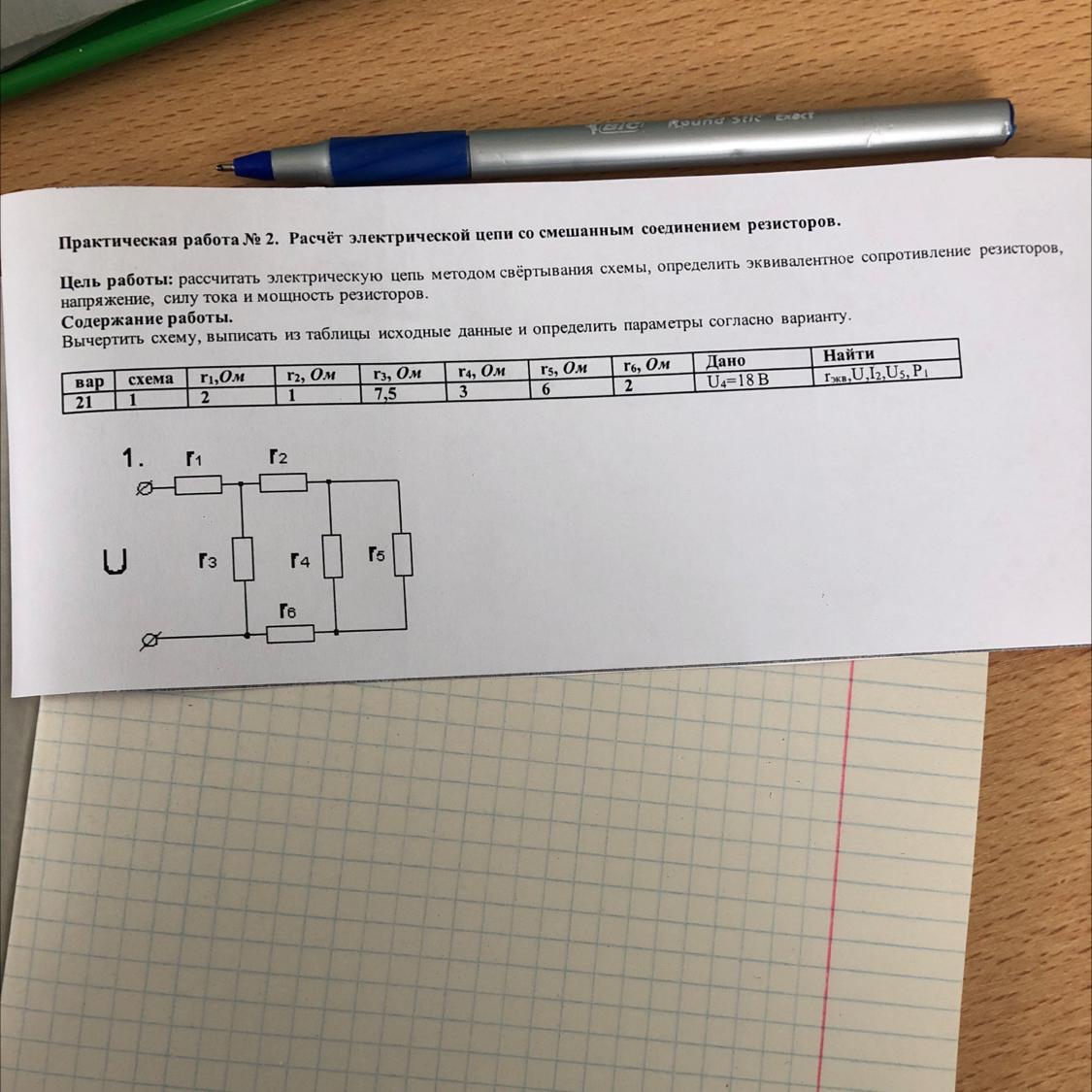 Практическая работа № 2. Расчёт электрической цепи со смешанным соединением резисторов.