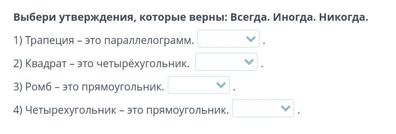 1- никогда; 2- всегда; 3никогда; 4 иногда