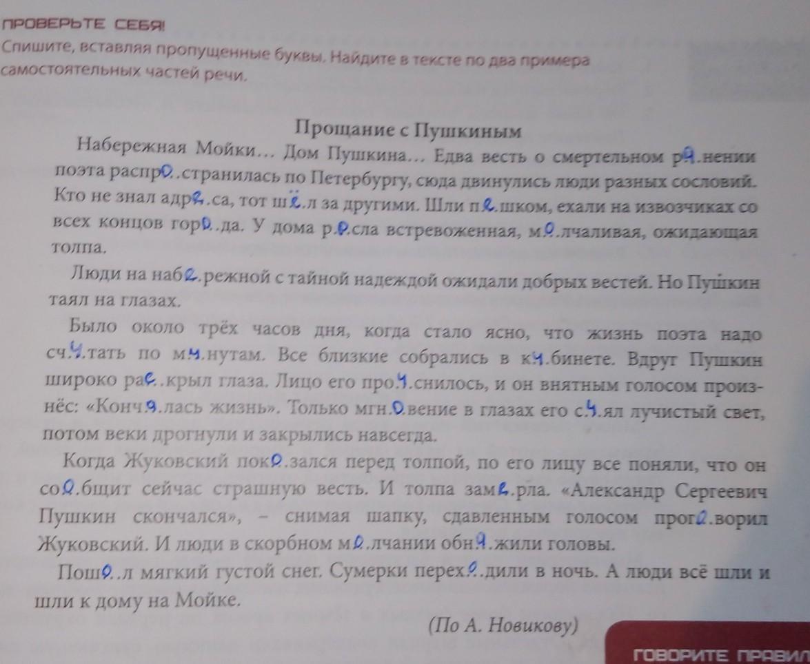 Пожалуста помогите мне с русским!!! Там только надо из текста выписать по 2 примера на каждую самостоятельную часть речи