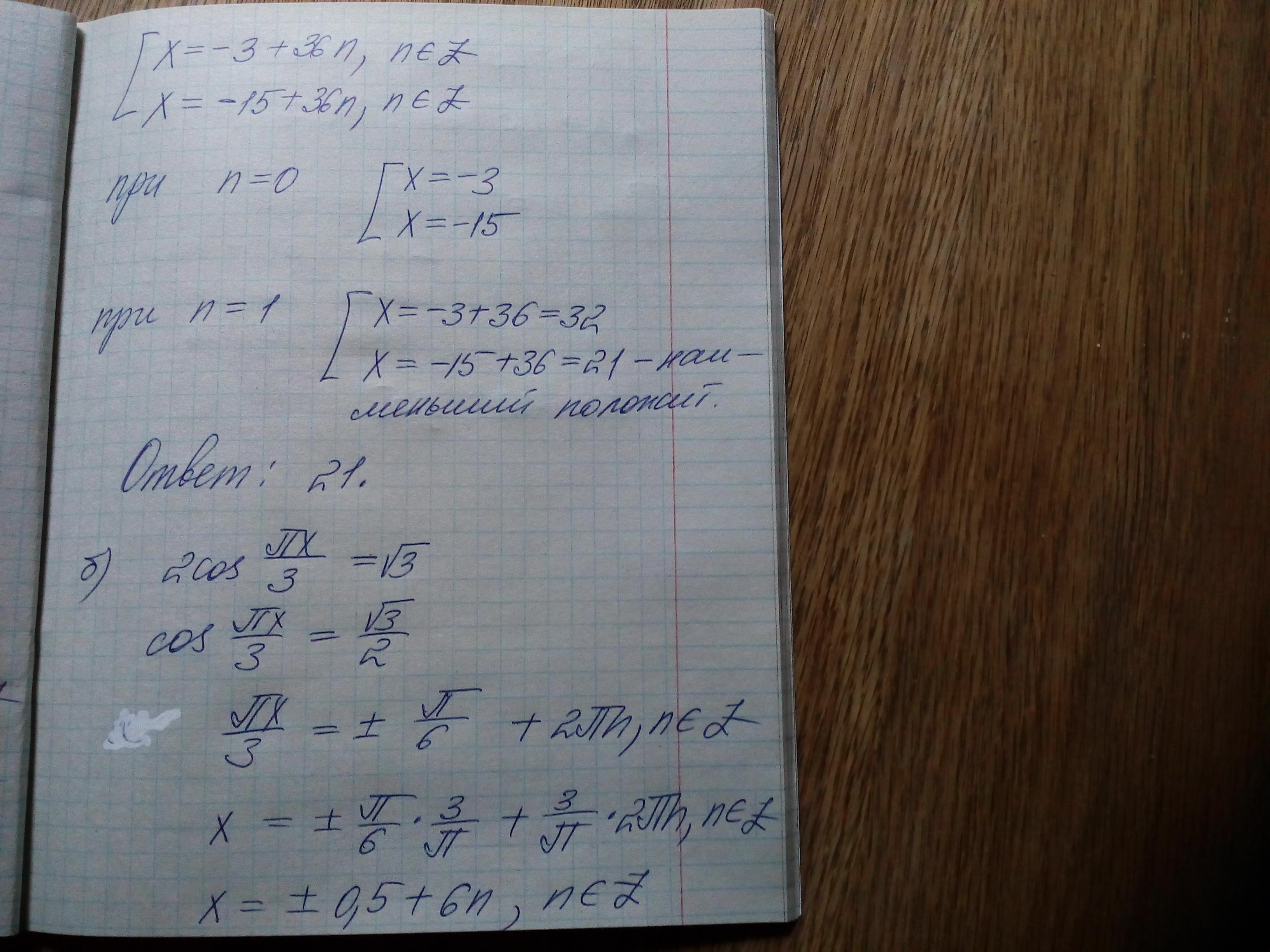 б) Найдите наименьший положительный корень уравнения 2cos pix/3=корень из 3