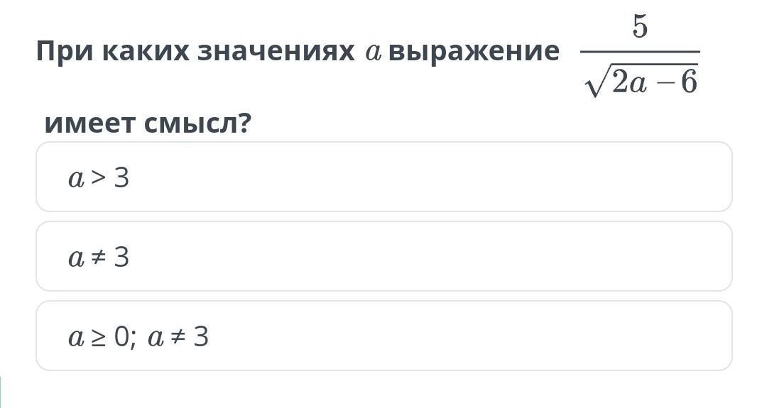 Если брать а меньше 3 подкоренное выражение будет отрицательным.