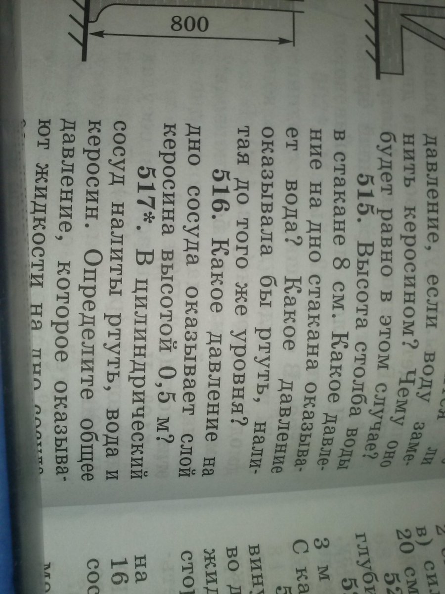 516. Какое давление на дно сосуда оказывает слой керосина высотой 0,5 м?