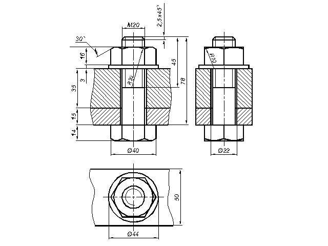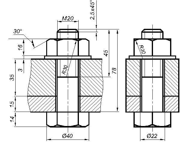 выполнить соединение резьбовое по 7 варианту, проставить размеры.