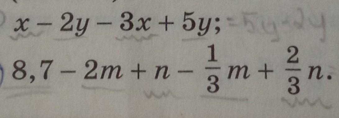 1) Приводим подобные члены. x - 2y - 3x + 5y = -2x + 5y