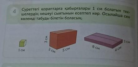 2) V( фиолетовый) =4*8*1=32 см^3; в фиолетовую коробку поместится 32:1=32 штуки коробочек с стороной 1 см