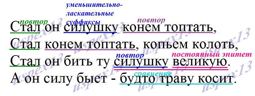 СРОЧНО 20 БАЛЛОВ!!!!!Докажите, что приведенный отрывок принадленит народнму осу Кокие кудожественные приемы десь присутствуют? Подчеркните нужное вгексте объсните свой выбор.) Стал он силушку конем топтать, Cтал конем топтать, копьем колоть, Cтал он бить ту силушку великую. A он силу быет -будто траву коит