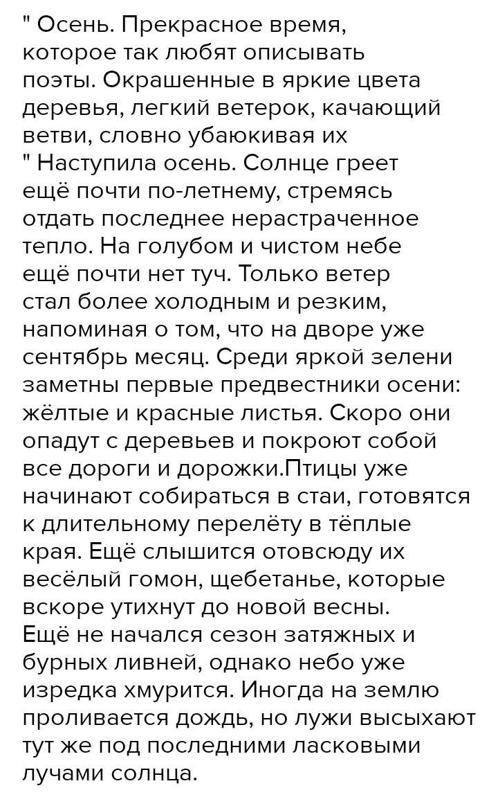Составить 5-7 предложений на тему <<Осень>>, используя глаголы в неопределённой форме.