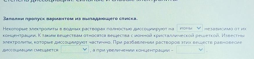 а есть ответ на вопрос, какое утверждение не описывает свойства слабой кислоты в растворе
