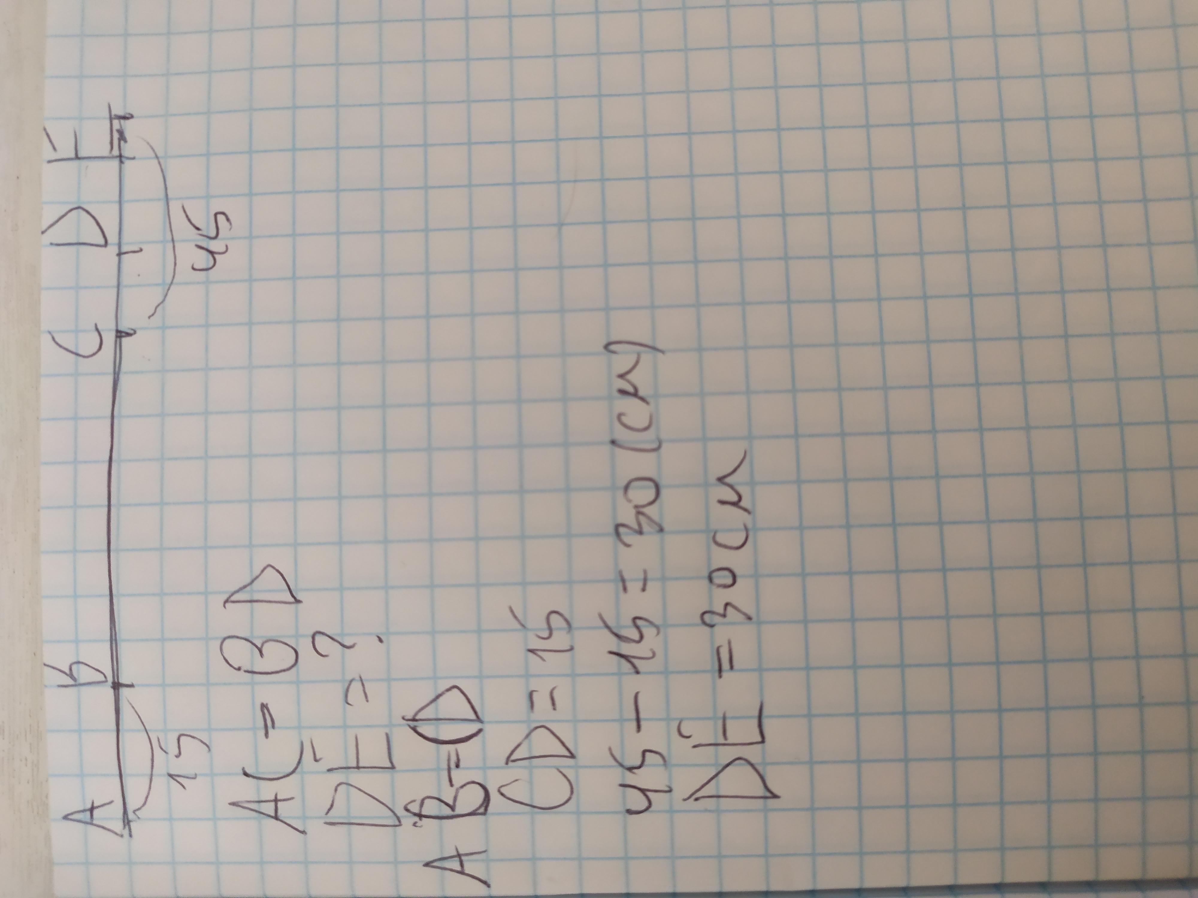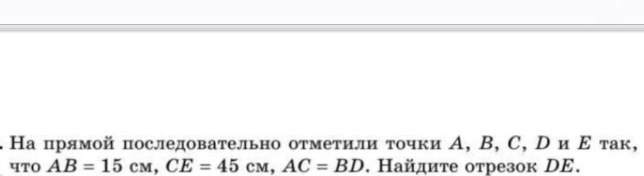 Дальше CE-CD=DE, то есть 45-15=30(см)