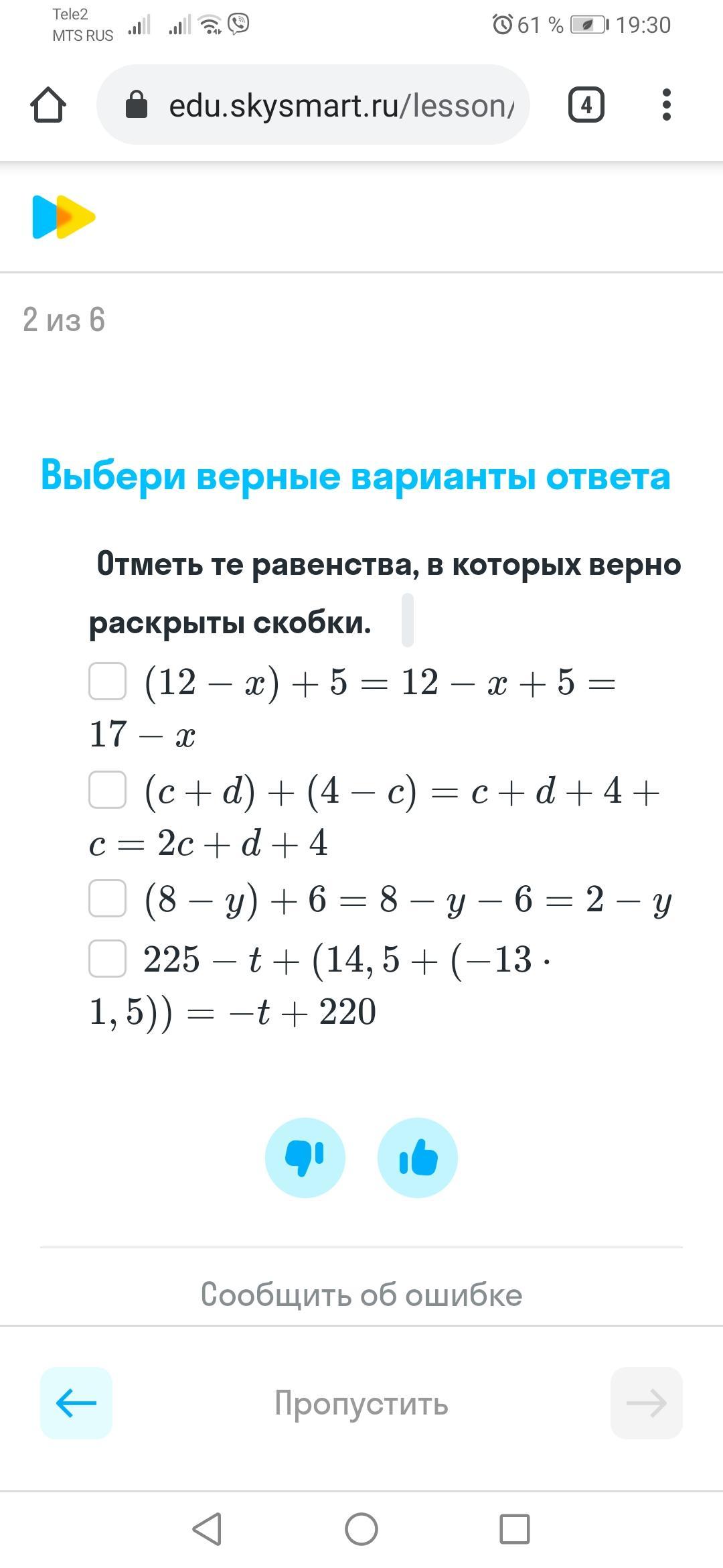 Верные равенства: