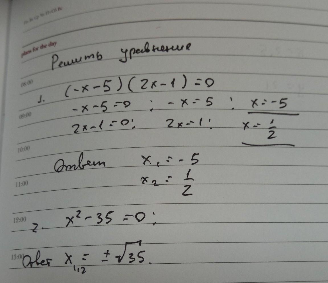 Ответ: х1 = -5, х2 = 0.5 ; x1,2 = +- корень из 35.