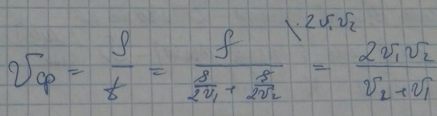По определению, средняя скорость равна отношению всего пути на все время. Преобразование нужной формулы представлено на фото.
