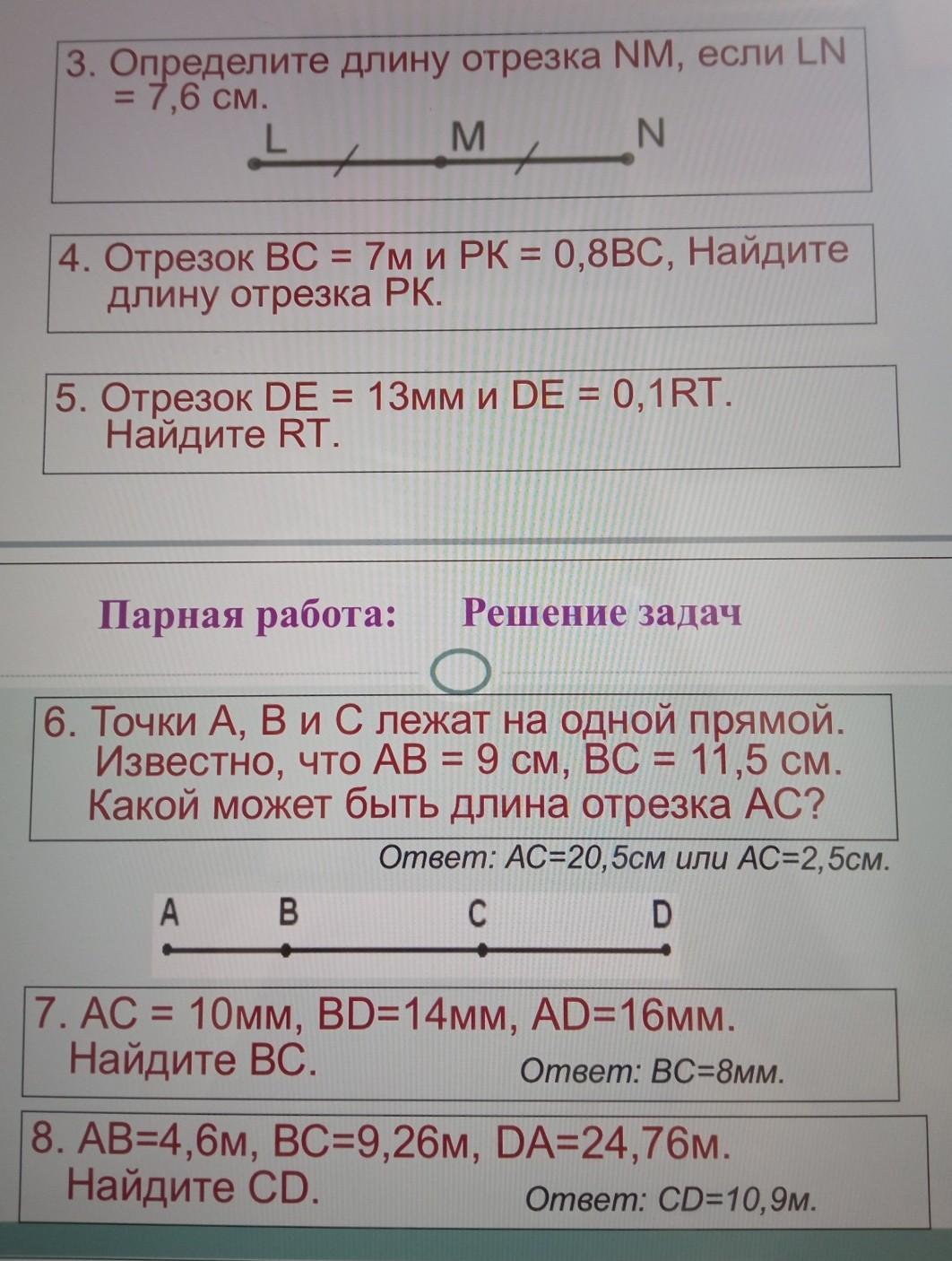 4.отрезок ВС=7м и РК=0,8ВС,Найдите длину отрезка РК