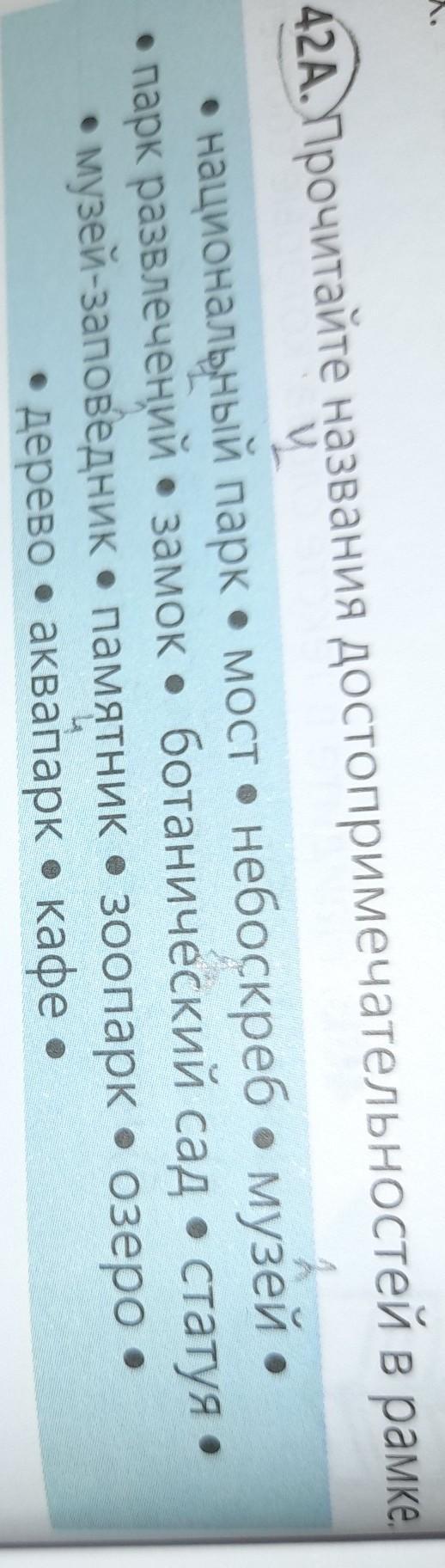 ов ва- 42Б. Допишите предложения. В каждом случае объясните выбор достопримечательностей. Достопримечательности это места исторических событий, природные объекты ( ...,...,...), здания (...,..,...), сооружения (...,...,...), парки (...,...,..).