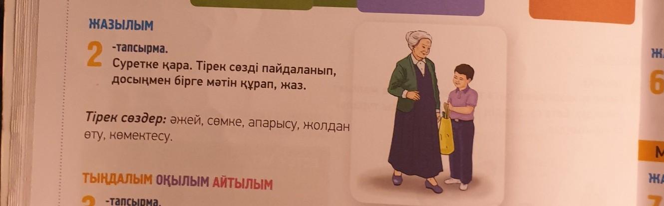 Бүгін мен үйге бара жатқан да бір әжейді көрдім маған аянышты болып кеті мен әжейге көмек тесуге жүгірдім Әжейдің сөмкесін алып жолдан өту көмектестім