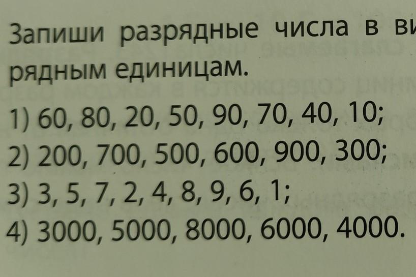 Запиши разрядные числа в виде суммы чисел, кратных их разрядными единицами.