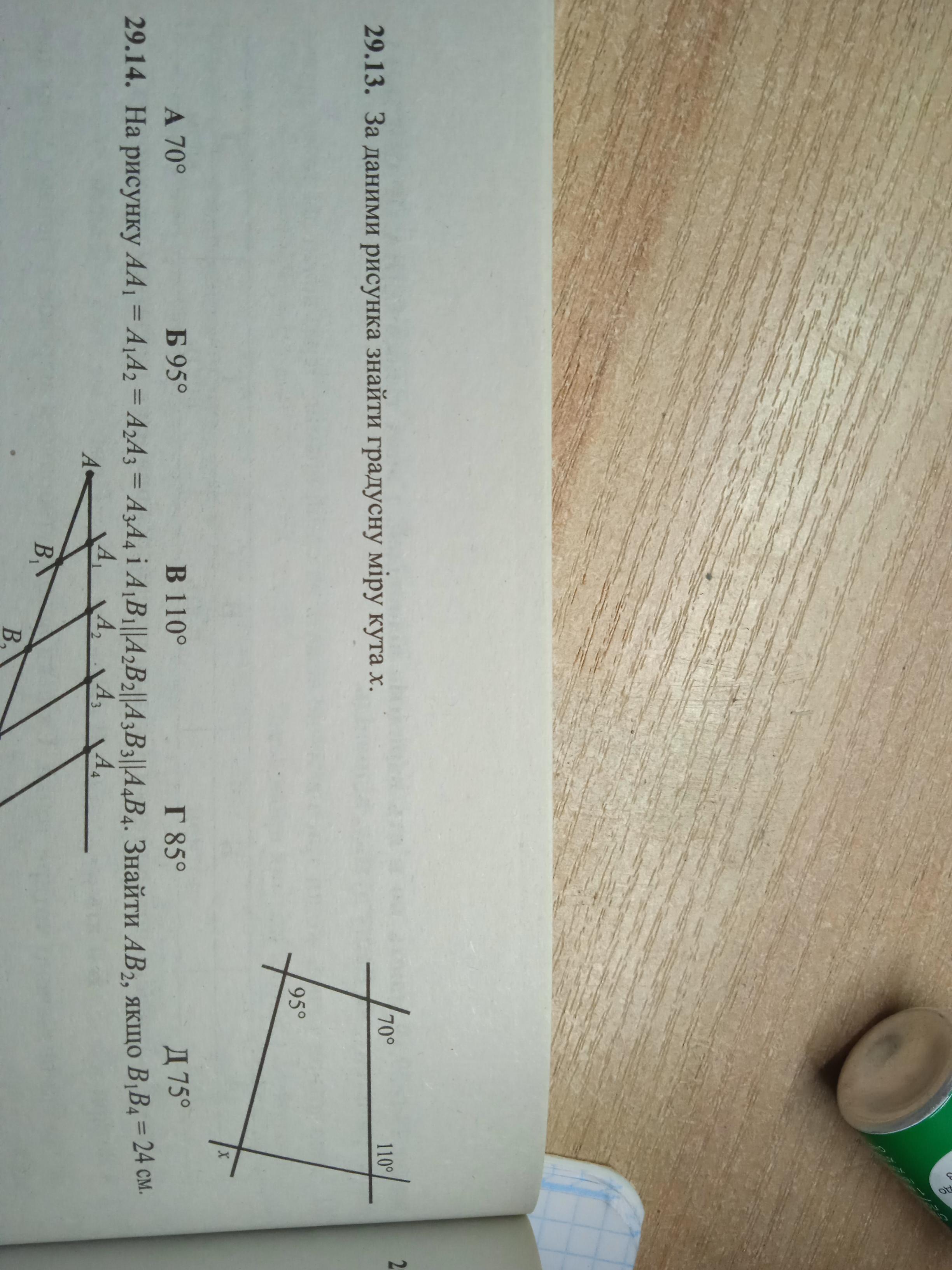 3) сумма углов выпуклого 4х угольника = 360° => 95° + 110° + 70° + x = 360°