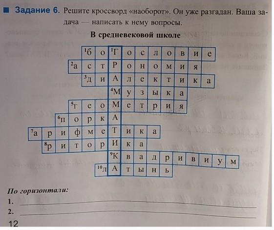 Задание 6. Решите кроссворд «наоборот». Он уже разгадан. Ваша за- дача написать к нему вопросы. Умоляю помогите пожалуйста