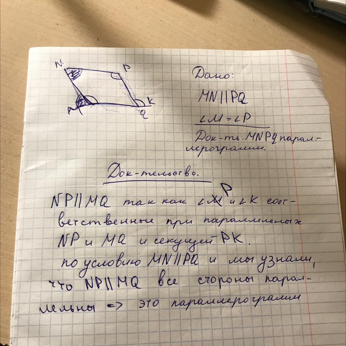 Сначала доказали, что все стороны параллельны, соответсвенно это параллелограмм. Запишите как нибудь более официально, я просто объяснила)