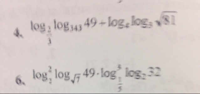 log(343) (49) = log(7^3) (7^2) = 2*(1/3)log(7)(7) = 2/3