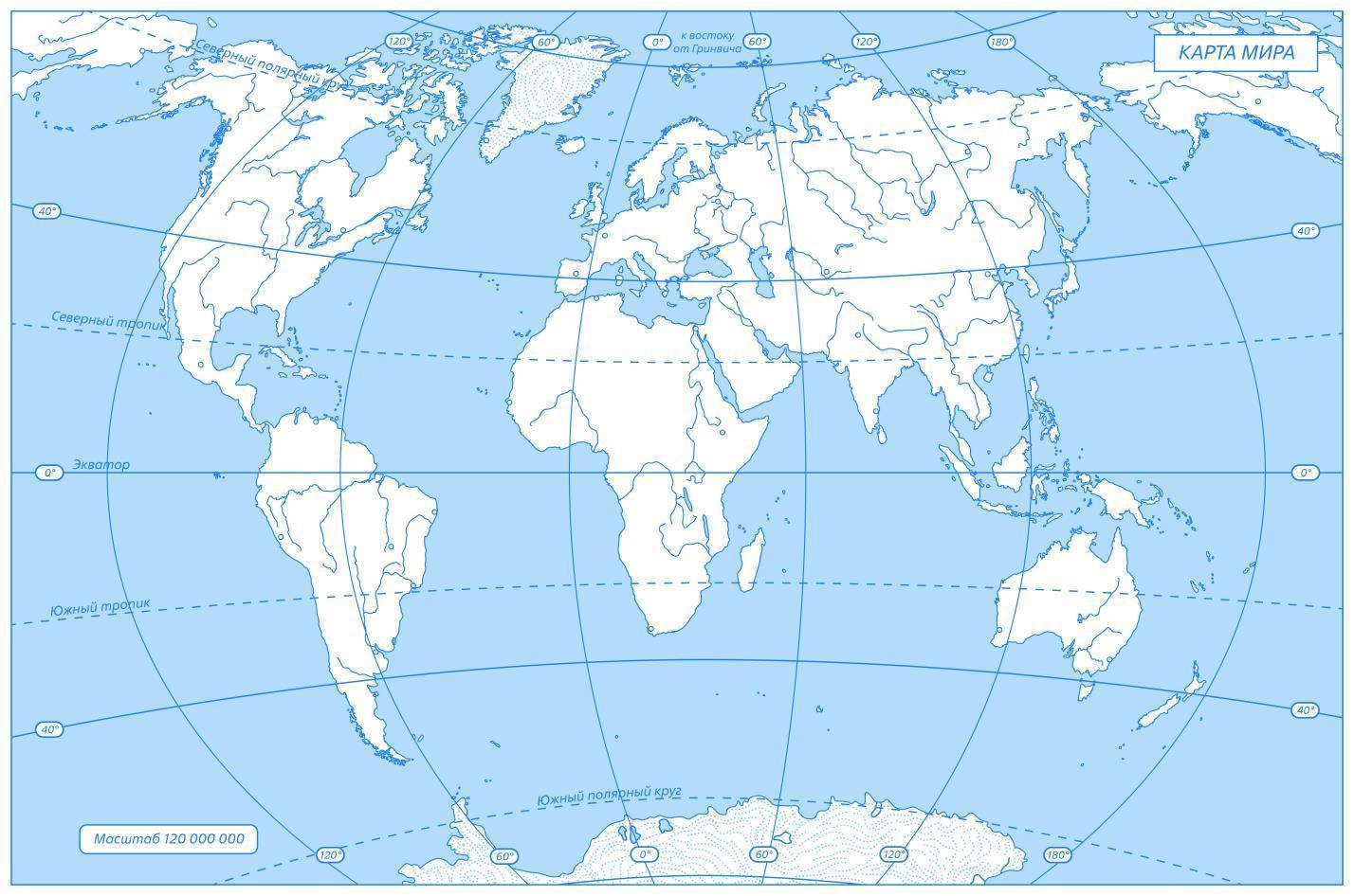 - Нанесите на контурную карту мира и подпишите океаны, материки и крупнейшие острова (5–6 примеров), крупнейшие тёплые и холодные течения. Тёплые изобразите красным цветом (5–6 примеров), а холодные – синим или чёрным (5–6 примеров). Карта дана ниже в приложении.
