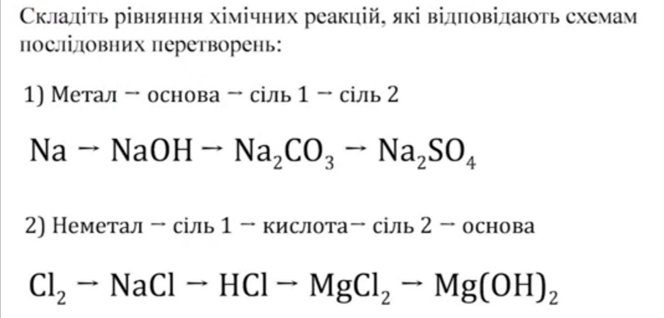 1) Метал - основа- сіль 1 - сіль 2 Na NaOH - Na,CO, - Na,S0,