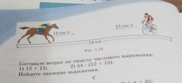 19 км ч 15 KM /ч KM Составьте нопрое по смыслу числового выражения: 1) 13 | 15; 2) 54: (1215). Найдите аначение выражения,