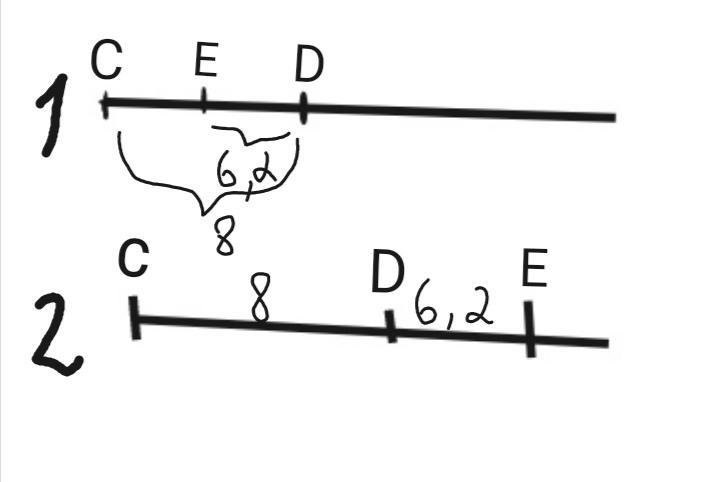 на промені CD позначено точку E знайдіть довжину відрізка CE якщо CD 8см ,ED6,2см скільки розв'язків в цій задачі?