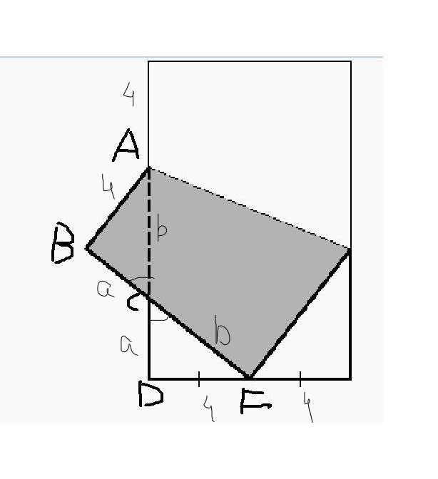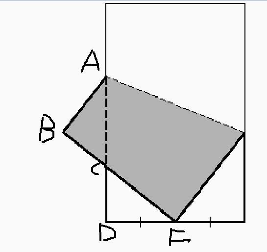 Прямоугольный лист бумаги согнули, совместив один из его углов с серединой противоположной короткой стороны . Оказалось, что треугольники ABC и FDC прямоугольного листа, если его короткая сторона равна 12